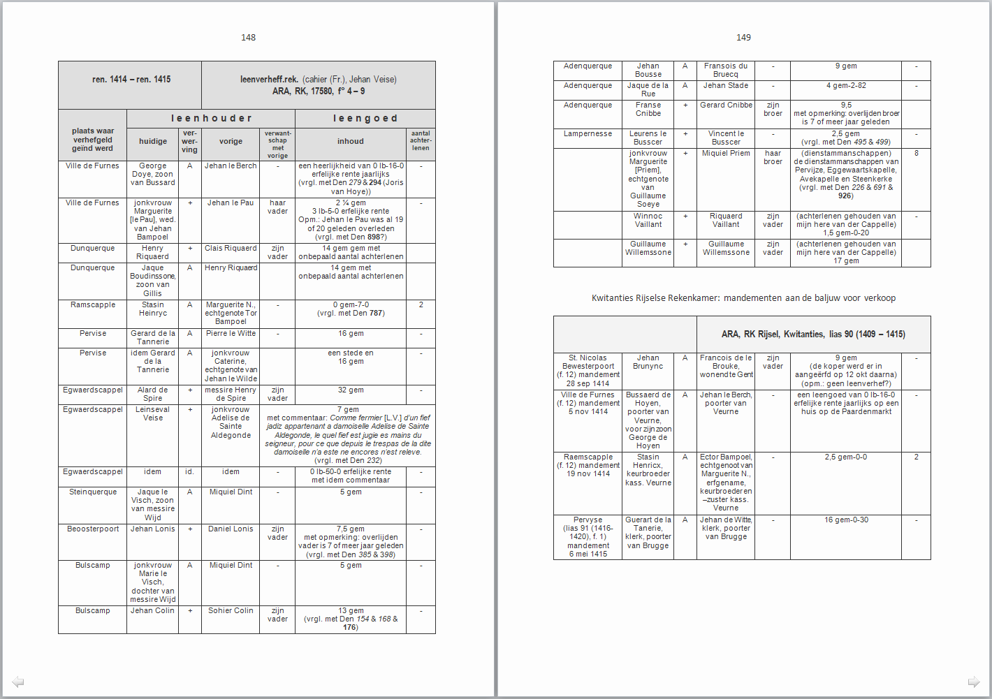 In deze bronnenpublicatie worden de rekeningen van de inning van het verhefgeld op leengoederen, afhangend van het grafelijk leenhof Burg van Veurne, uitgegeven.